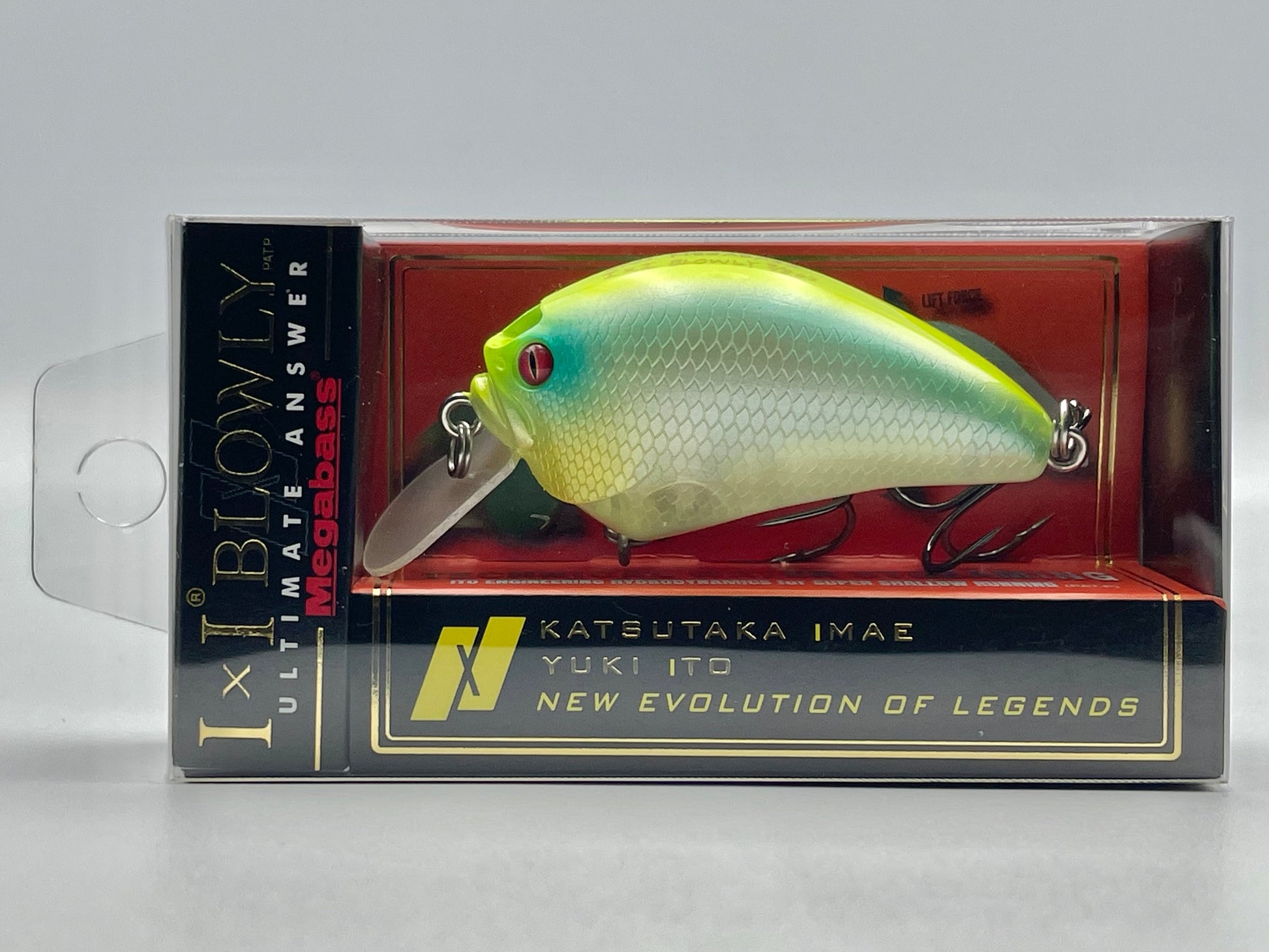 Megabass IXI BLOWLY is a super shallow-running crankbait designed through the collaboration of Katsutaka Imae and Yuki Ito. Compact at 49mm and weighing 3/8 oz, it delivers intense vibration and water displacement with a unique hydrodynamic body and water-through structure. Perfect for provoking reaction bites in shallow water, its sharp, high-frequency action attracts bass from a wide range of angles and depths.